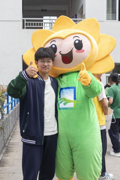 最后,同學(xué)們自己設(shè)計(jì)的吉祥物“越陽”隆重登場(chǎng),給同學(xué)們送去“愛的抱抱”,提醒每一位同學(xué)關(guān)愛自己、接納自己,從而愛自己、愛他人、愛社會(huì)。
