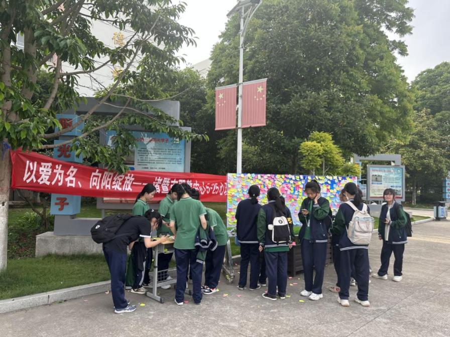 知而后行,表情達(dá)意。在豐富師生關(guān)于心理健康知識(shí)的同時(shí),學(xué)校圍繞活動(dòng)主題“以愛為名,向陽綻放”設(shè)置展板,請(qǐng)同學(xué)們送出有關(guān)“愛”的一句話。用一顆溫暖的心,給自己溫暖的話,讓感動(dòng)與溫暖彌漫整個(gè)校園。