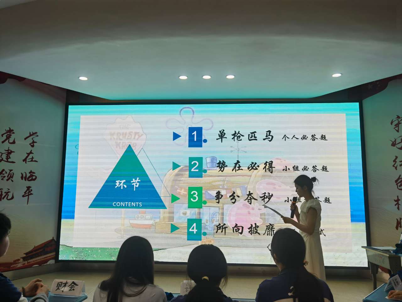 比賽分為四個環(huán)節(jié),客觀題與情境表演題。中間穿插6個表演節(jié)目,有競賽有娛樂,張弛有度地安排,適合選手發(fā)揮。