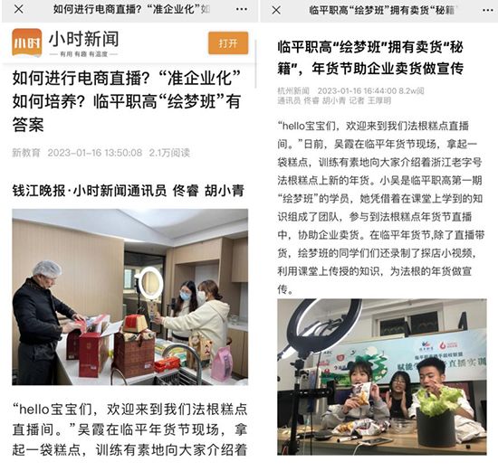 繪夢班同學還承接了臨平區年貨節、法根企業代播等活動。