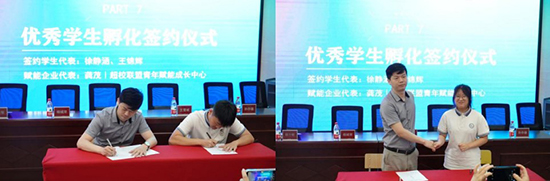 龔茂與王錦輝和徐靜涵兩位優秀同學共同簽署了電商直播人才孵化合作協議。公司將為學生提供為期3個月的直播帶貨一體化孵化支持,并給予學生一定的項目利潤。
