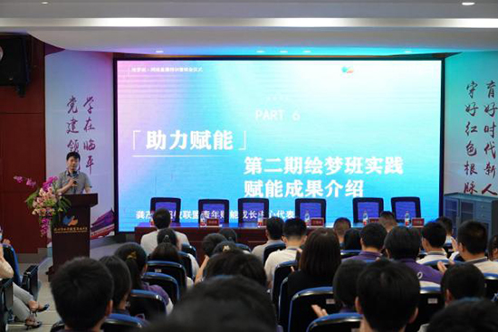 龔茂作為超校聯盟青年成長賦能中心代表,對第二期繪夢班實踐賦能成果進行介紹。他對同學們取得的優異成果給予肯定,這來之不易的成果,離不開學校對直播實訓設施的配套支持,離不開知名品牌對青年直播實踐項目的助力,離不開品牌授權及直播選品的供應支持,更離不開繪夢青年賦能中心配套實踐基金。