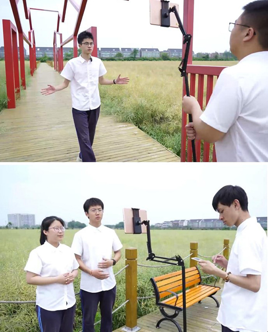 同學們參與了未來鄉村雙橋村主題直播,在鄉村田野間展示風采。
