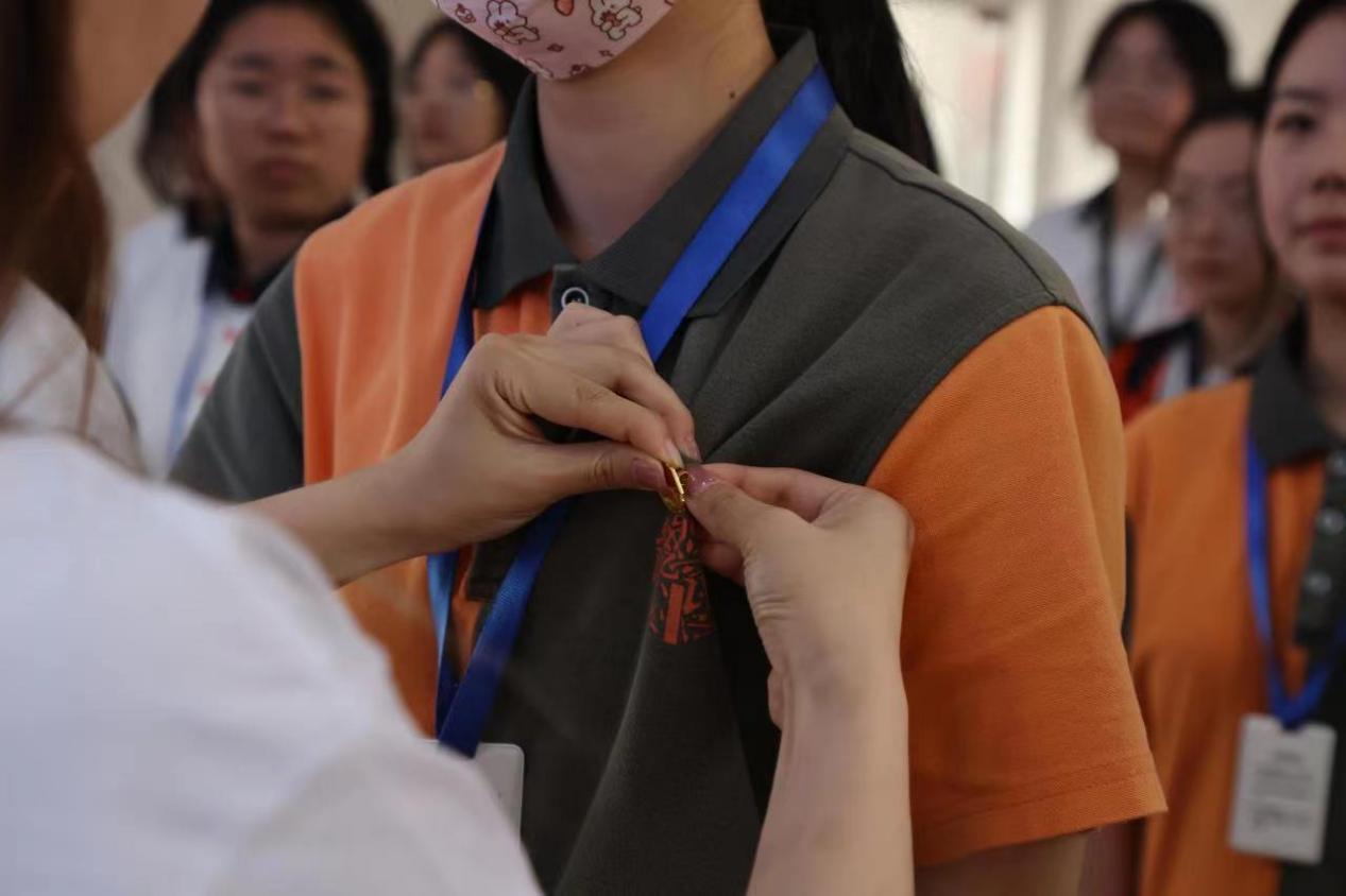 團(tuán)委老師為新團(tuán)員頒發(fā)團(tuán)員證,佩戴團(tuán)徽。小小的團(tuán)徽蘊(yùn)藏著沉甸甸的團(tuán)員責(zé)任。從戴上團(tuán)徽的這一刻起,他們有了一個(gè)共同的名字——“共青團(tuán)員”,他們將用更高的標(biāo)準(zhǔn)要求自己,充分發(fā)揮團(tuán)員模范帶頭作用。