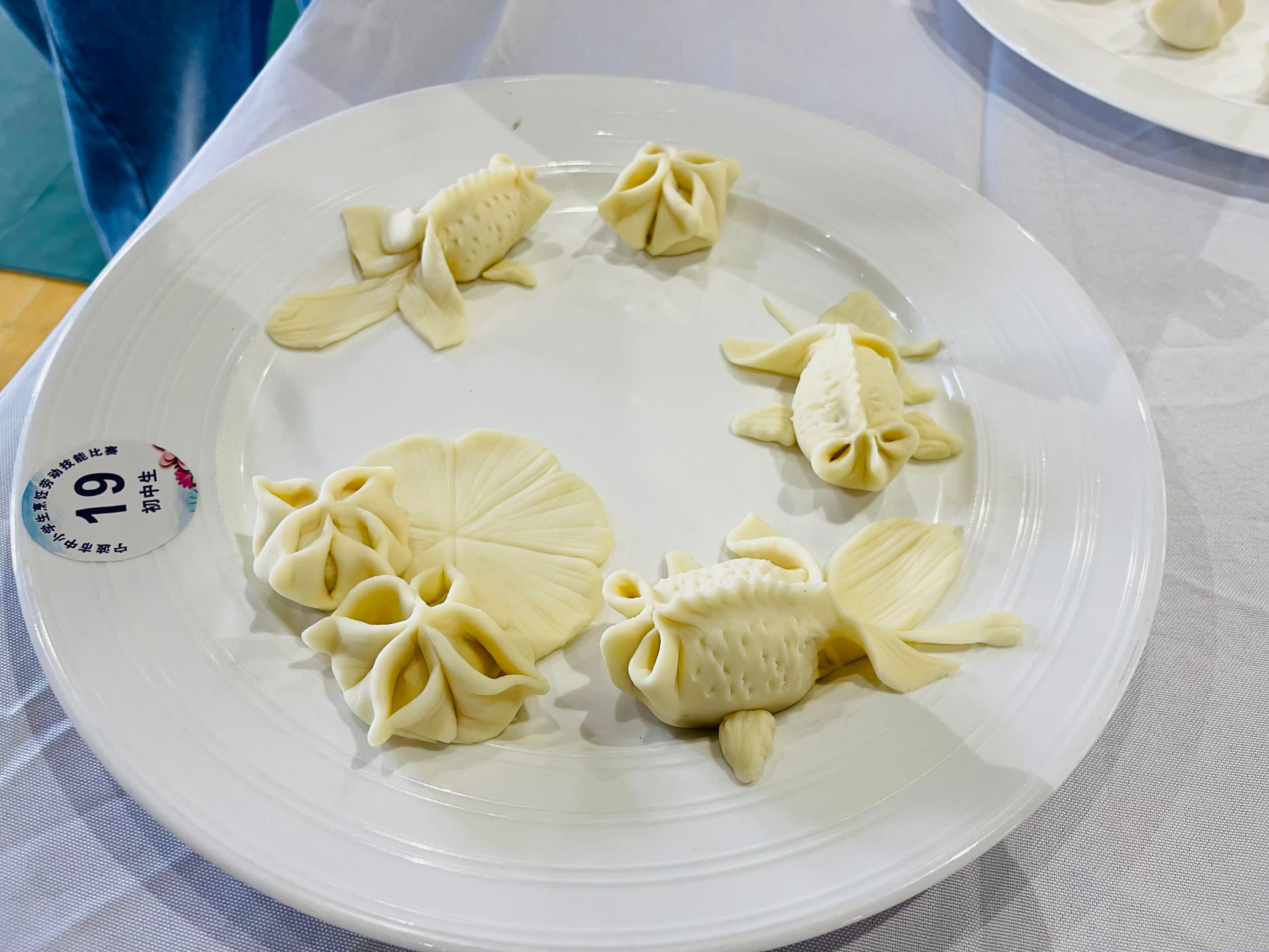 速度快的選手在大家還在處理面粉的時候,已經拿起餃子皮,往里放肉餡,然后有節奏、流暢地捻起。手起手落間,他們將餃子擺入盤中,形態美觀,大小勻稱,獲得觀摩嘉賓和評委老師的一致好評。