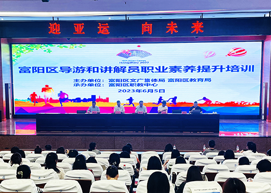 為進一步加強富陽區(qū)導游(講解員)隊伍的建設(shè),不斷提高專業(yè)素質(zhì)和講解水平,更好地樹立導游(講解員)隊伍良好的行業(yè)形象,并為2023年杭州亞運會儲備一支知識全、業(yè)務(wù)精、能力強的導游(講解員)人才隊伍。富陽區(qū)文化和廣電旅游體育局、富陽區(qū)教育局于5月31日和6月5日舉辦“迎亞運·向未來”富陽區(qū)導游和講解員職業(yè)素養(yǎng)提升培訓班,富陽區(qū)職業(yè)教育中心(富陽區(qū)富春成校)承辦。