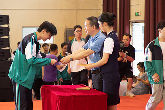 伴隨著激昂的音樂,現(xiàn)場進行校旗接力儀式。畢業(yè)生張仕杰莊重地接過楊校長手中的校旗,再傳遞給高一學(xué)弟,象征著新舊傳承,揚帆精神的傳遞。不久前,張仕杰剛剛獲得2023年浙江省中等職業(yè)學(xué)校職業(yè)能力大賽“航空服務(wù)”項目一等獎第一名。“真的非常感謝學(xué)校和我的老師們,是老師們辛勤無私的付出,讓我們創(chuàng)造了一個個不可能,雖然畢業(yè)了,我會永遠想念你們!”他說。