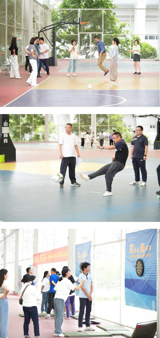 趣味游園健身賽現(xiàn)場熱鬧非凡。足球射準、沙包奪分賽、飛鏢比賽、30秒競速跳繩……教職工們興致勃勃、積極參與,在運動中感受亞運精神,用自己的方式為亞運打call。