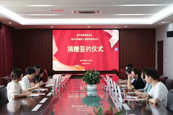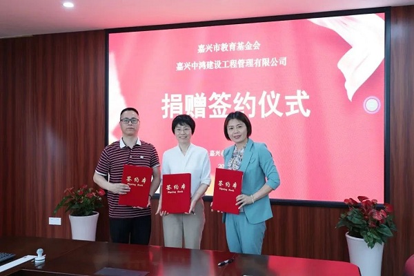 近日,嘉興中鴻建設工程管理有限公司與嘉興市教育基金會、嘉興市建筑工業學校的捐贈簽約儀式在嘉興市建筑工業學校舉行。嘉興市教育基金會秘書長高兆英、秘書處處長張俊芳,嘉興中鴻建設工程管理有限公司總經理郭志健、副總經理金亞琴,嘉興建校黨委書記、校長范曉春,副校長錢琴梅,以及培訓合作處和校務辦公室相關負責人出席儀式。