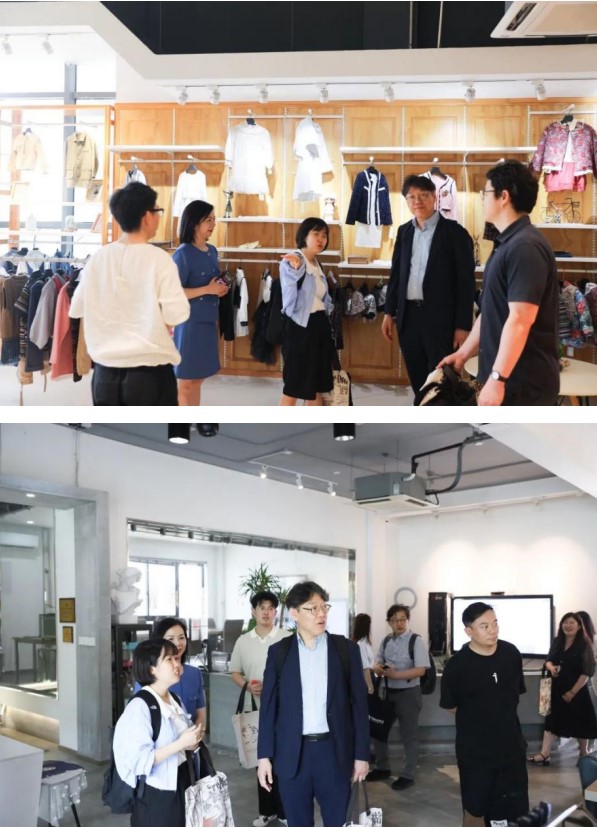 隨后,大家一同參觀學校小型音樂廳、旅游實訓室、服裝EPC、箱創中心、匠心坊、一爾工作坊、藝承工作室、浙北童裝中心等實訓室。