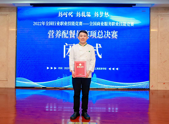 2022年12月,團(tuán)隊(duì)邵澤東老師獲得全國營養(yǎng)配餐員賽項(xiàng)冠軍,全國技術(shù)能手