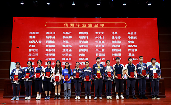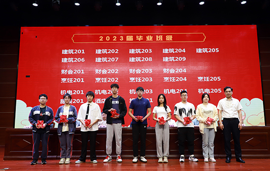 學校黨委委員、副校長蔡建老師公布上虞區職業中專2023屆優秀畢業生名單。校領導隨后為54名“優秀畢業生”頒發榮譽證書。學校黨委委員、副校長姜松老師宣讀關于準予畢業決定文件。張建平依次為2023屆畢業班級代表頒發畢業證。