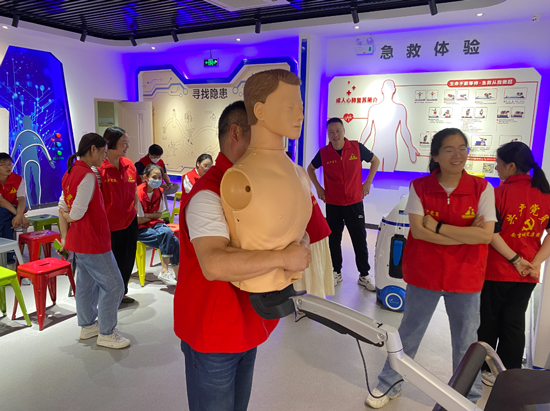 遞鋪分院老師、浙江省紅十字會二級救護師丁柏偉向大家詳細講解心肺復蘇和氣道異物梗阻的相關知識及救護方法,帶大家體驗認識生命模塊中人的一生、生命如歌及三救三獻三個體驗室,通過視聽和互動的方式,讓職工代表們充分認識生命的寶貴。接著,丁老師邊帶大家參觀體驗,邊講解地震知識、交通安全、家庭安全和防觸電知識。職工代表們與丁老師積極互動,體驗當危險發生時該如何應對,教學氣氛融洽,現場響起熱烈的掌聲,培訓取得了良好的效果。