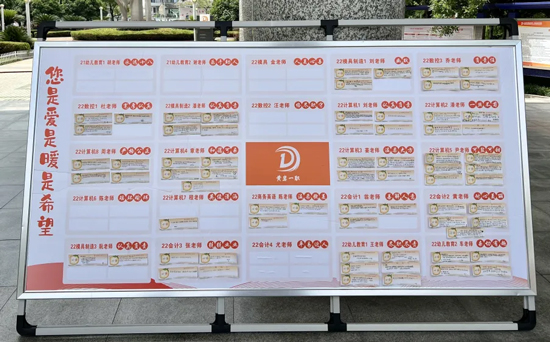 “給可鹽可甜的尹老師"“給一絲不茍的潘老師”“給耐心美麗的黃老師”“給負責任的喬老師”……展覽板上張貼的是每個班級的每位學生對班主任說的悄悄話。據了解,學校德育處提前一周將特制的悄悄話卡片交給每班班長,讓每位同學“秘密”寫一句對班主任的心里話。