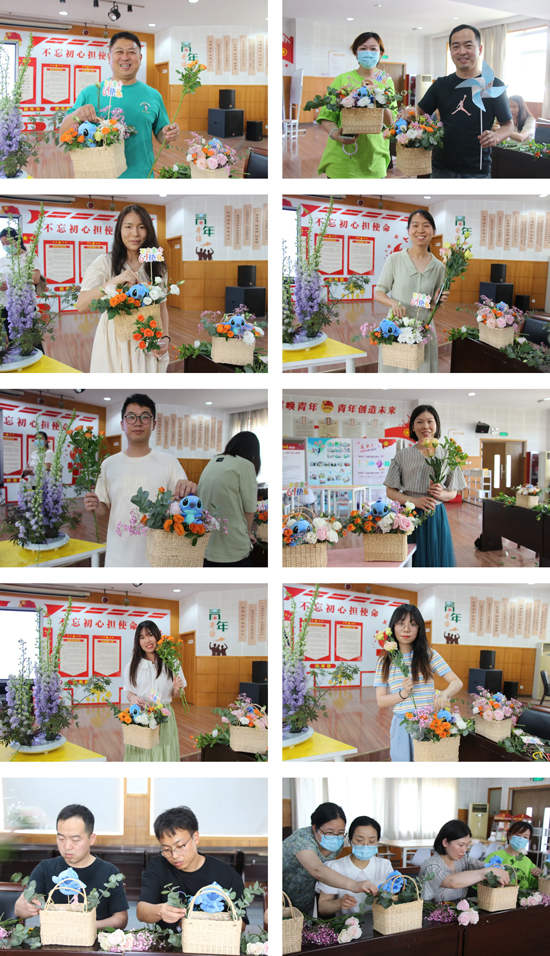 活動結束,每位班主任臉上都洋溢著幸福笑容,提著自己插的花籃走出了活動室。