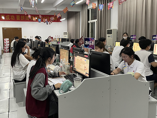 “親,有什么可以幫您?”“親,我們會盡快為您安排發(fā)貨,請耐心等待。”都說養(yǎng)“兵”千日,用“兵”一時。平時的知識與技能終于可以在這里大展身手了。在學(xué)校的6號機房,30余名學(xué)生分成兩個小組,通過“千牛”和“京麥”兩個平臺分別與天貓、京東的買家溝通,緊張地處理著訂單。電商教學(xué)課堂變成了“6.18”活動的主戰(zhàn)場。