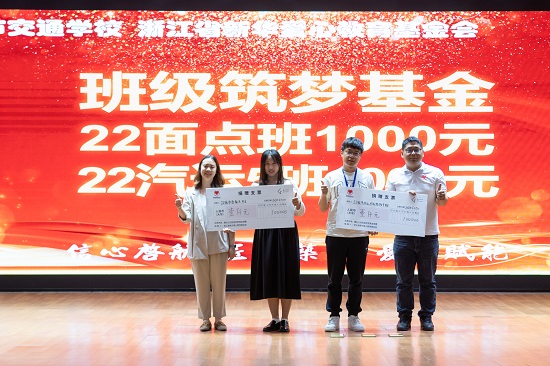 每一個(gè)班級(jí)都是一個(gè)集體,在班主任的帶領(lǐng)下,同學(xué)們積極加強(qiáng)班級(jí)建設(shè),不斷提升班級(jí)凝聚力,基金會(huì)為班級(jí)發(fā)展建立夢想基金,主要用于班集體的建設(shè)。陳紅亞、沈嘉誠兩位班主任上臺(tái)接受了基金會(huì)頒發(fā)的夢想基金。