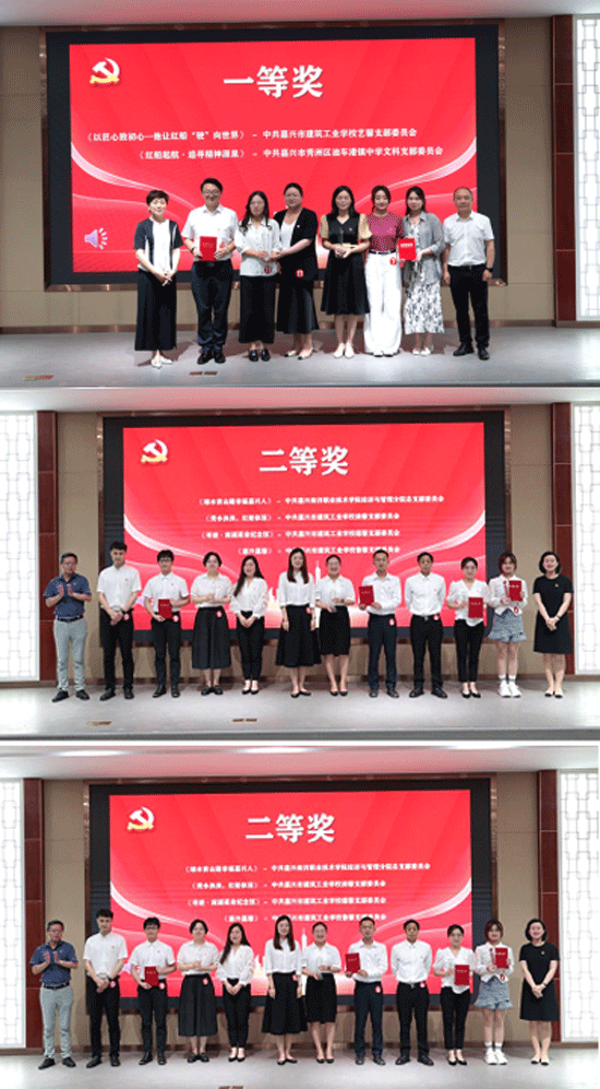 比賽角逐出一等獎(jiǎng)2項(xiàng),二等獎(jiǎng)4項(xiàng),三等獎(jiǎng)5項(xiàng)。中共嘉興市建筑工業(yè)學(xué)校藝馨支部委員會(huì)選送的《以匠心致初心——他讓紅船“駛”向世界》和中共嘉興市秀洲區(qū)油車(chē)港鎮(zhèn)中學(xué)文科支部委員會(huì)選送的《紅船起航·追尋精神源泉》斬獲一等獎(jiǎng)。