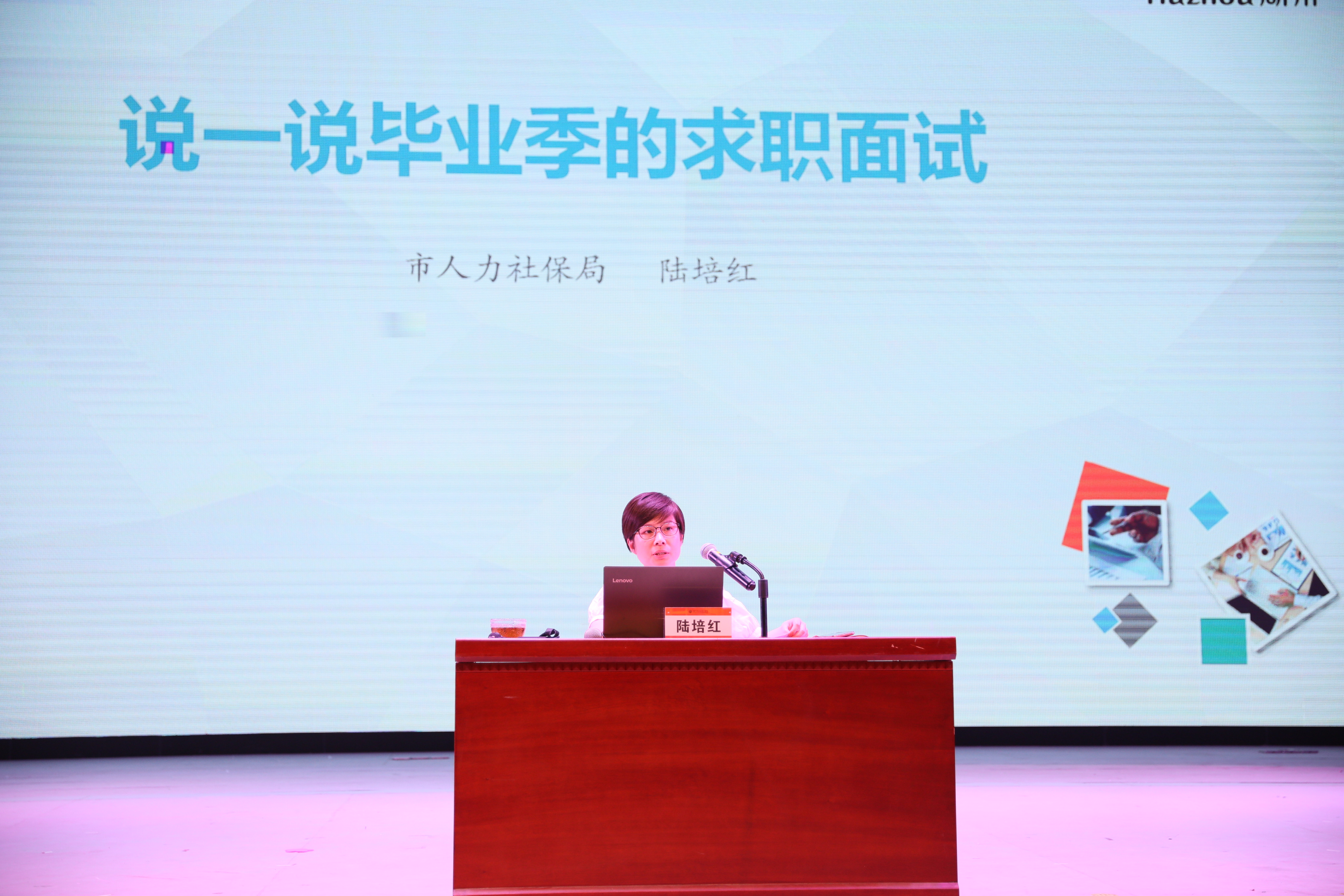 陸培紅在會上作題為“說一說畢業(yè)季的求職面試”的就業(yè)指導講座,從面試的基本概念、面試的種類、面試的特點、面試測評的主要內容、面試的應對方法和面試的禮儀六個方面展開,為大家詳細講解面試的注意要點。會后,很多同學表示“戳到了我的知識盲點”“很實用”“面試容易犯的錯誤那塊印象最深”……