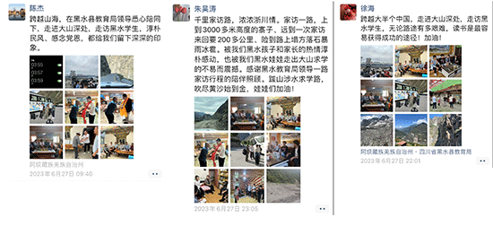 接下來的兩天,在黑水縣教育局領(lǐng)導的陪同下,老師們爬上高山、徒步森林、冒著暴雨……走進大山深處、來到學生家中,和學生及家長促膝長談。
