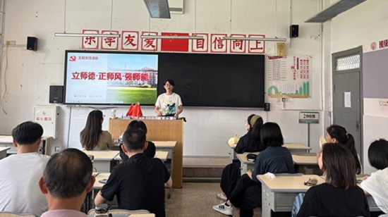 第五黨支部組織委員吳紅穎對《新時代教育職業(yè)行為十項準則》進行詳細解讀,從正反兩面引導全體黨員教師文明執(zhí)教、依法施教、廉潔從教,堅決杜絕違反師德的行為發(fā)生,以優(yōu)秀的師德修養(yǎng)投入教學工作。