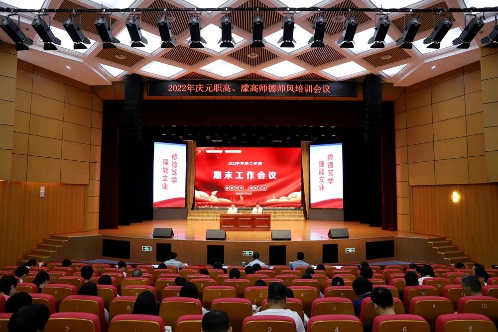 7月9日,慶元縣職業高級中學在學術報告廳召開2022學年第二學期期末總結工作會議。校黨總支書記范壽鵬主持會議,并作題為《做一個有良知的教師》的師德師風專題講座,校長姚望良作學期總結講話。副校長鄭河南、張發、吳孚妹、王海,以及全體教職工參加會議。