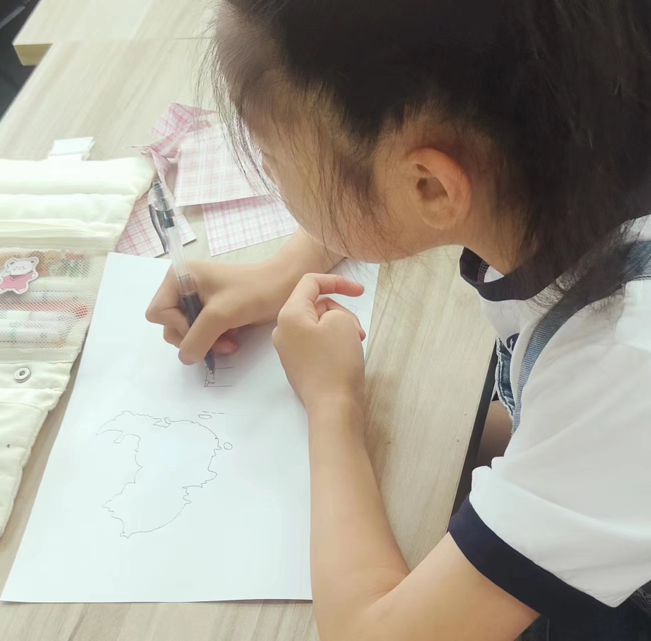 為了加深孩子們對中國地圖的認識,志愿者隨后設置了動手繪畫中國地圖環節。在動手繪畫環節中,孩子們拿起彩筆,運用自己的彩色表達形式,在紙上繪出自己心中的中國地圖,表達對祖國的熱愛。