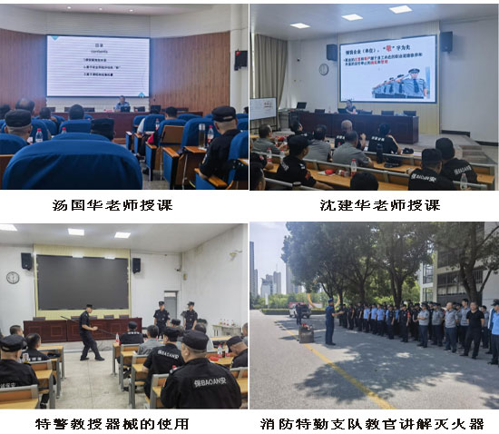 此次培訓課程內容主要為加強業務提升、實操演練、個人形象和禮儀規范等方面的培養。湖州市公安局治安支隊一級警長湯國華從保安服務本質的角度,向學員們講解如何提升保安服務質量;浙江省湖州藝術與設計學校優秀教師沈建華從愛崗敬業出發向學員們講述校園保安禮儀與文明用語。實操課上,湖州市消防特勤支隊教官在講解滅火器,消防水帶使用后,指導安保人員進行實操訓練,湖州市公安局特警支隊的教官指導學員使用安保器械及安保必備動作。