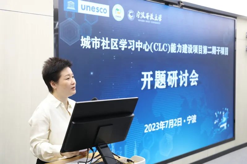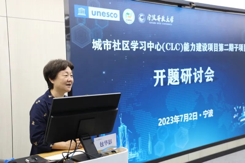 7月2日上午,城市社區(qū)學(xué)習(xí)中心(CLC)能力建設(shè)項目第二期子項目開題研討會在寧波開放大學(xué)召開。此次會議由寧波開放大學(xué)主辦,得到了中國聯(lián)合國教科文組織全國委員會秘書處與聯(lián)合國教科文組織駐華代表處、中國成人教育協(xié)會、寧波市教育局大力支持和精心指導(dǎo)。中國成人教育協(xié)會副會長、城市CLC總項目組組長包華影、江蘇省成人教育協(xié)會會長,城市CLC項目專家組組長孫曙平、中國成人教育協(xié)會學(xué)術(shù)委員會委員,總項目專家組副組長周延軍、中國教育科學(xué)研究院研究員,CLC項目專家組副組長張竺鵬、江蘇省成協(xié)專家委員會專家,城市CLC總項目組秘書長蔣根興、寧波市文化館副館長宋臻、寧波市文化館全民藝普中心副主任吳佳等專家組成了本次開題研討會的評審組。寧波開放大學(xué)校長翁雪蓮、副校長郭瑋出席了本次會議,參加會議的還有各申報單位及項目實驗點的有關(guān)同志,會議由寧波開放大學(xué)終身教育處處長李承安主持。