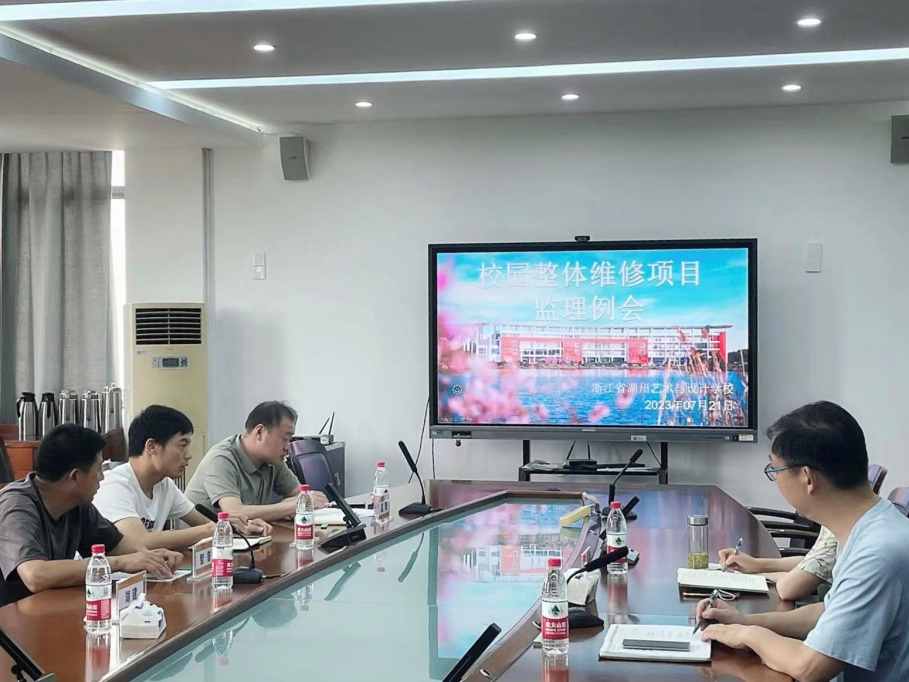 7月21日上午,浙江省湖州藝術與設計學校暑期校園整體維修項目監理例會在行政樓一號會議室召開,學校黨委紀檢組組長、副校長武紅,總務處處長鄭波,監理單位負責人馮愷,各施工單位負責人參加會議。