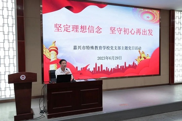 為進(jìn)一步加強(qiáng)黨員黨性鍛煉,嚴(yán)守政治紀(jì)律和政治規(guī)矩。近日,嘉興市特殊教育學(xué)校黨支部組織全體黨員來(lái)到嘉興市建筑工業(yè)學(xué)校,開(kāi)展“堅(jiān)定理想信念,堅(jiān)守初心再出發(fā)”主題黨日活動(dòng),校黨委書(shū)記、校長(zhǎng)范曉春參加此次活動(dòng),并為嘉興市特殊教育學(xué)校全體黨員講授專(zhuān)題黨課。