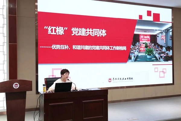 活動(dòng)中,范曉春以《優(yōu)勢(shì)互補(bǔ),和諧共建的黨建共同體工作新格局》為題給現(xiàn)場(chǎng)的全體黨員上了一堂專(zhuān)題黨課,詳細(xì)且深度講述了共同體聯(lián)盟的成立、形式、目標(biāo)以及活動(dòng)開(kāi)展等,并以《凝心聚力謀“十四五”發(fā)展,融合創(chuàng)新促“雙高”收官》為題介紹了學(xué)校的建設(shè)經(jīng)驗(yàn)和成果。