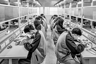 江西省南城縣職業中等專業學校電子應用專業學生在電子實訓操作室進行實操訓練。吳國龍攝/光明圖片