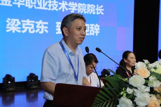 梁克東代表承辦校向與會的領(lǐng)導(dǎo)、專家以及指導(dǎo)老師和參賽選手們表示熱烈的歡迎,并簡要介紹了金華概況、學(xué)校發(fā)展歷程以及學(xué)前教育高水平專業(yè)群的辦學(xué)成果。他表示,學(xué)校高度重視師生技能大賽,始終堅(jiān)持以賽促學(xué)、以賽促建、以賽促融,近年來取得了較好的成績。希望通過承辦本次大賽,持續(xù)激發(fā)高職院校與幼兒園教師專業(yè)標(biāo)準(zhǔn)、高職學(xué)前教育專業(yè)建設(shè)標(biāo)準(zhǔn)的研究,引領(lǐng)幼兒教育、職業(yè)教育教學(xué)改革的方向。他強(qiáng)調(diào),學(xué)校將傾力助推學(xué)前教育專業(yè)均衡發(fā)展,借助大賽搭建平臺,統(tǒng)籌整合行業(yè)和社會資源,密切高職院校之間的交流合作,推動職業(yè)教育、產(chǎn)教融合走深走實(shí),實(shí)現(xiàn)互利共贏促發(fā)展。