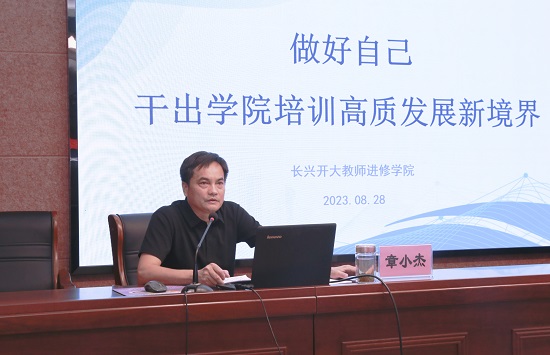 8月28日上午,長興開大教師進修學(xué)院召開以“做好自己,干出學(xué)院培訓(xùn)高質(zhì)發(fā)展新境界”為主題的開學(xué)工作會議,部署新學(xué)期相關(guān)工作。