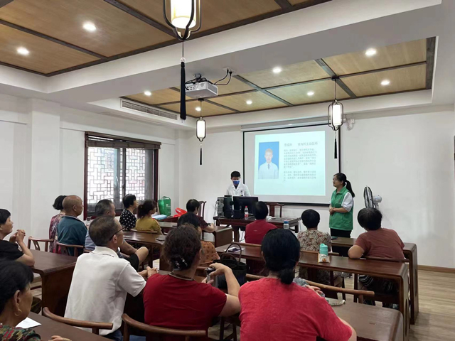 李成林從簡單的腎臟結構開始講解,讓轄區老人們了解到腎臟的五大功能以及腎臟功能的運行機制,用通俗易懂的語言表達了腎臟是如何工作的。之后,又對腎臟慢性病的定義,分類,病程,表現等進行初步的講解,針對性地講述不同情況的慢性腎病所對應的理療法,以及早期腎病的預防方法。