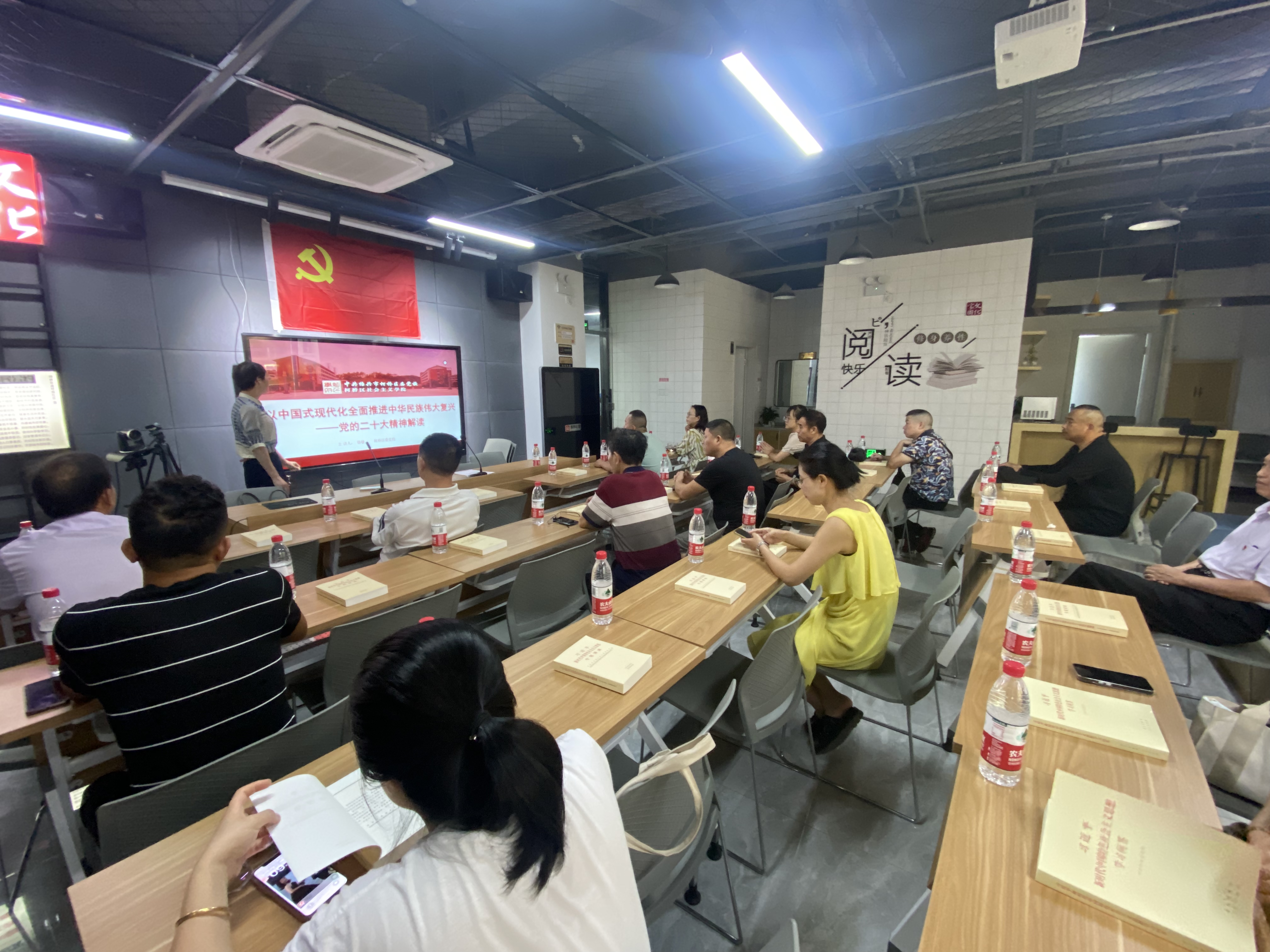 柯橋區委黨校高級講師駱敏受邀主講。駱敏老師對黨的二十大報告進行了全面的解讀。著重從旗幟、道路、精神、目標四個方面進行全面的闡述,使受訓黨員耳目一新。