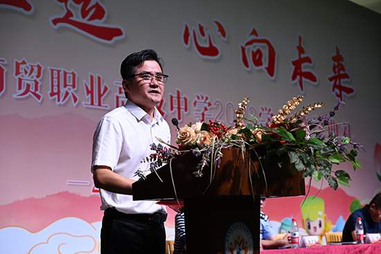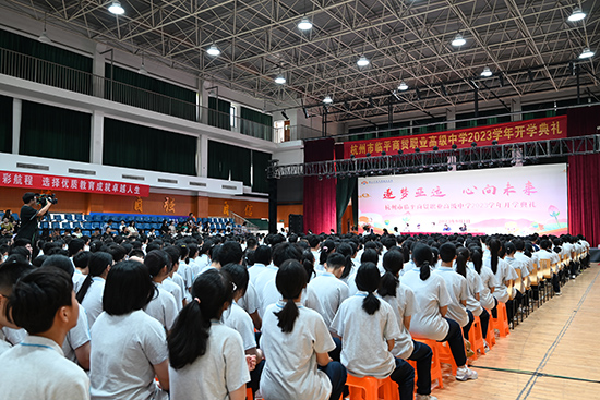 恰逢亞運會來臨之際,希望同學們爭當東道主,以飽滿的精神狀態迎接這場體育盛會,做有自信講情懷,有格局講文明,有理想不言棄,有學識敢挑戰的商貿少年,用自己的勤奮與智慧書寫商貿人的新榮耀!