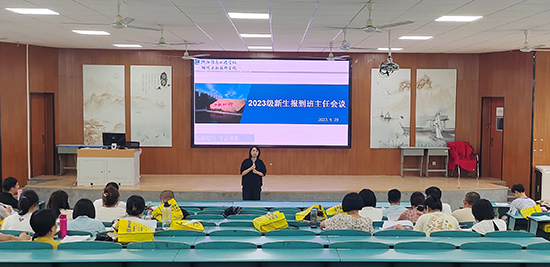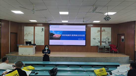 楊育萍就開學新生報到流程、物資領取發放、軍訓事項安排等做詳細解讀,同時布置了新學期開學的主要工作任務,強調了班主任工作的重要性,從開學報到、家訪安排、儀容儀表、宿舍管理、校園安全等方面對班主任提出具體要求,要求班主任樹立信心,打開思路,明確方向,豐富德育途徑,創新工作方法。隨后,督導處處長姜寶東、后勤處處長吳蕙蘭、招生就業處副處長馬彥分別就本部門所承擔的工作職責作相應說明,以確保開學工作順利進行。