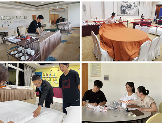 老師們的不辭勞苦是學生孜孜不倦的力量源泉。六百多個日日夜夜,酒杯、桌布、床單是兩位同學親密無間的朋友。“雖然過程很辛苦,但艱苦的過程特別能鍛煉人。放棄這兩個字是15筆,堅持這兩個字是16筆。別看只有一筆之差,結果卻大不一樣,所幸我們選擇了堅持。”史奇、康海濤手捧獎狀,感觸很深。長期的訓練,練就了兩位同學精湛的酒店操作能力,同時也培養了他們不輕言放棄和感恩的品質。