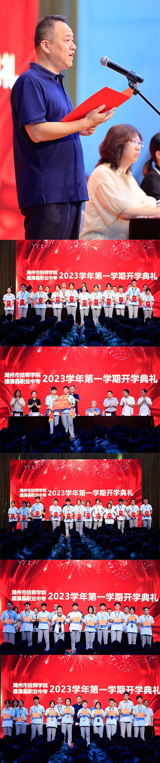 滿載著喜悅和祝福,懷揣著憧憬與夢想,美好的新學期如期而至,9月6日下午,德清職業中專全體師生齊聚體藝館,舉行2023學年第一學期開學典禮。學校總負責人董國偉,副校長兼各系主任呂夢非、楊月明、余靜學,政教處處長馬紀孝,教務處負責人李云,保障處負責人姚建強出席,典禮由校黨政辦負責人李馥萸主持。