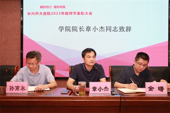 9月8日上午,長興開大教師進修學院舉辦教師節慶祝表彰活動,會議由學院黨總支書記金曙主持。