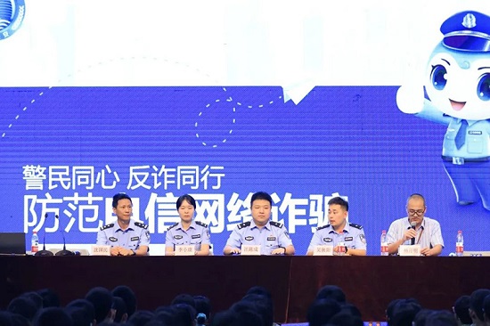 警官還提醒師生做到不輕信、不轉賬、不透露,遇事?lián)艽蚍丛p熱線,利用好“國家反詐中心APP”中的來電預警和網(wǎng)上報案等功能,嚴守個人信息安全,增強防范意識;并呼吁師生向周邊的親友普及防詐知識,以校園輻射家庭,拓展防范電信詐騙的廣度,共筑安全防線。
