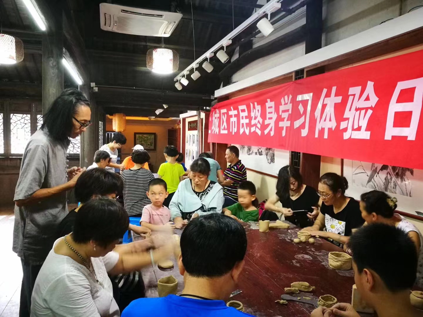 “陽光藝術 匠心助殘”終身學習品牌項目以“以殘助殘”為教育理念,創始人許峰及愛心藝術大師教學團隊指導殘疾人制作匠心獨運的扇面、景泰藍、釉上彩、紫砂壺等,作品銷售后幫助殘疾人實現就業創業本領。其學習基地陽光藝術中心已發展成為培訓、交流、展示、創業就業為一體的文創孵化基地,更多的殘疾人走進來,學習中國傳統民間藝術,展現他們自強不息的精神。同時,每年為大中小學生、廣大市民、社會各界企業、機關單位等開展傳統藝術體驗公益活動百余場。受益該學習品牌項目的殘疾人群及青少年、市民、中外游客達80000多人次,已成為杭州市的一張文創藝術金名片。