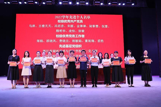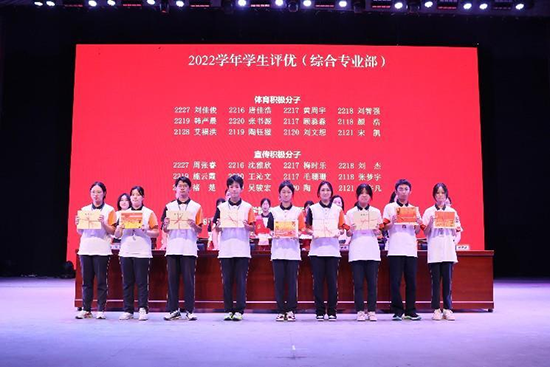 大會在莊嚴的國歌聲中拉開序幕。副校長費永軍、司曉妹、沈慶軍先后宣讀了2022學年省市級技能大賽獲獎名單,校級獎學金、“三好學生”“優(yōu)秀學生干部”“優(yōu)秀團員”“單向積極分子”“文明班級”以及“優(yōu)秀團支部”等表彰文件。