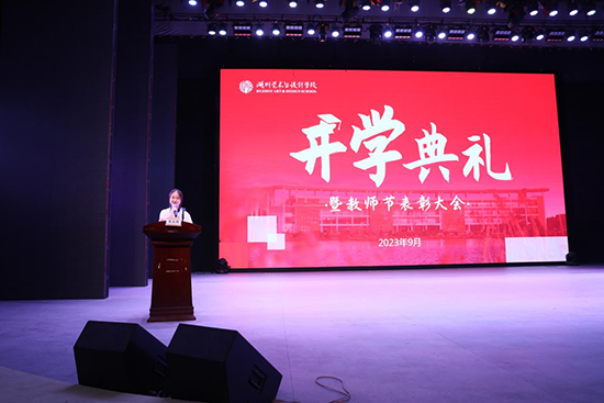 9月8日下午,浙江省湖州藝術與設計學校2023學年開學典禮暨教師節(jié)表彰大會在學校星海演出廳舉行。黨委書記唐海佺,黨委副書記、校長方毅瑛,黨委委員、副校長費永軍、司曉妹、沈慶軍、馮君彥、凌怡出席,部分師生代表到現(xiàn)場參加,其余班級同步觀看直播,大會由司曉妹主持。