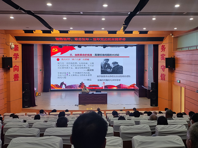 范主任以《激蕩百年、革命百年——百年黨史中的自我革命》為題作專題講座。他帶領老同志們回顧百年黨史,剖析了“遵義會議、延安整風運動、真理標準問題大討論”等歷史事件,在自我革命的實踐中,不斷練就“打鐵必須自身硬”功夫、永葆黨的生機活力。