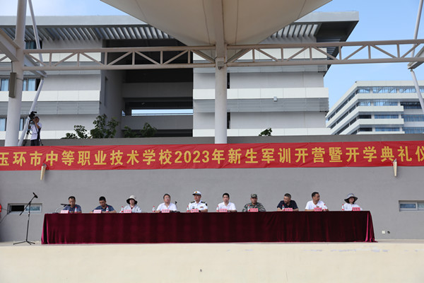 9月18日上午,玉環市中等職業技術學校舉行新生軍訓開營儀式暨2023年秋季開學典禮。玉環市人武部副部長唐志鵬、參謀王偉龍,學校黨總支書記張昌森、校長吳德章與全體領導班子出席典禮,典禮由副校長熊邦忠主持。