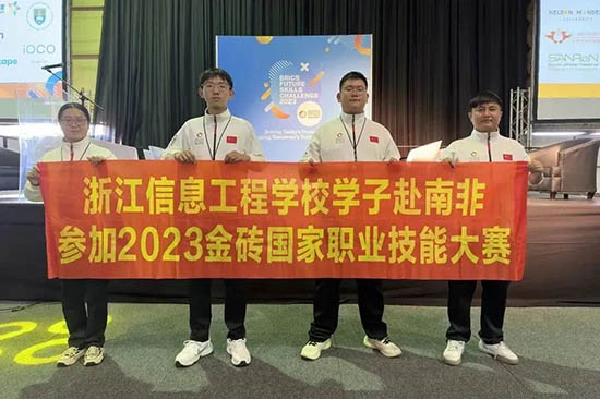 9月12日—9月15日,2023年金磚國家職業技能大賽(金磚國家未來技能挑戰賽)國際總決賽在南非約翰內斯堡成功舉行。浙江信息工程學校團隊(選手:謝錫宇、張俊輝,技術專家:胡煜,翻譯指導:邱曉娟)赴南非參加農業物聯網賽項比賽。此次比賽有南非、中國、俄羅斯、巴西等金磚國家共15支參賽隊伍同臺競技,經過3天的激烈比拼,學校學子以穩定的心理素質和扎實的技能水平,在國際職業技能大賽中首獲優秀獎。