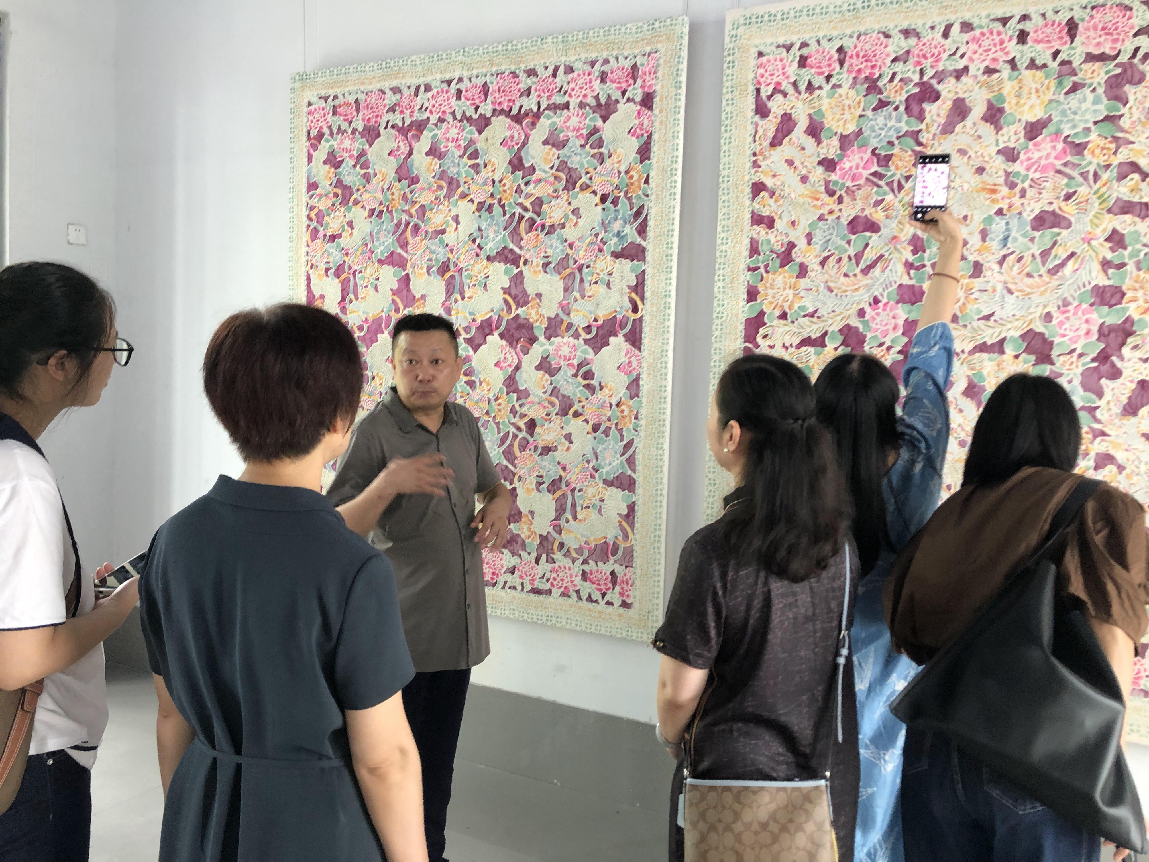 著力推進(jìn)人才培養(yǎng)。哀警衛(wèi)大力引進(jìn)工藝美術(shù)大師、中國美院和北京服裝學(xué)院的專業(yè)人才,定期給員工進(jìn)行專業(yè)培訓(xùn),提高非遺工坊從業(yè)人員的整體水平,培養(yǎng)高技能人才。截止目前,已培養(yǎng)省工藝美術(shù)大師2名,嘉興市大師5名,藍(lán)印花布技藝省級(jí)非遺代表性傳承人1名。此外,哀警衛(wèi)積極舉辦不同群體的非遺技藝培訓(xùn)班,包括大學(xué)生創(chuàng)業(yè)創(chuàng)新技能培訓(xùn)、機(jī)關(guān)老干部藍(lán)染技藝學(xué)習(xí)、中小學(xué)生研學(xué)等,年培訓(xùn)量達(dá)3000多人次,有效推動(dòng)藍(lán)染技藝保護(hù)和傳承。